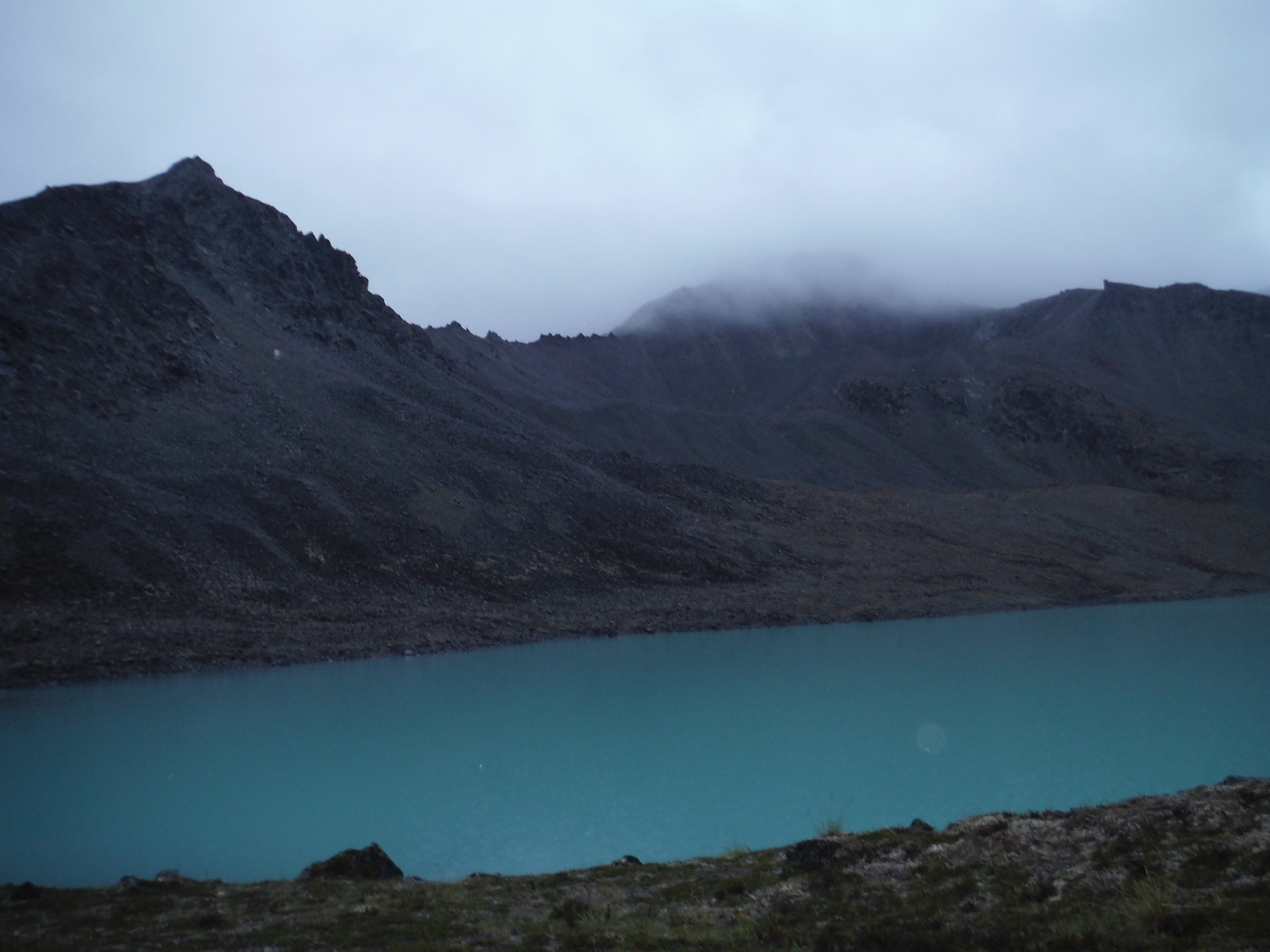 Our trip went as follows: After covering some camping basics and getting our gear all ready, we were flown out via bush plane to the Nelchina Glacier, where we made our first meal together and sat in a group while deciding what our values were, and what kind of community we wanted to be to each other on this trip. I cried behind sunglasses, listening as each person offered up vulnerability and acceptance for each other’s skill level and personalities, despite having just met. After that night, we spent the rest of the days walking, camping, and cooking: first away from the glacier through the river valley, then up a steep hike through thick willows and alders, concaving around a peak I didn’t think I could reach. Next, we hiked up and down bigger rocks, then scree, to an alpine pass, then down the other side of it, making camp for an extra night in the fog surrounding the perfectly turquoise Lile Lake, before leaving it a day and a half later, under a rainbow.